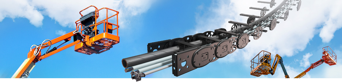 Telescopic work platforms and cherry pickers offer little space for safe energy supply, so users like to use energy chains made of high-performance plastics or plastic-steel hybrid energy chains from igus to protect their over-taxed cables and hoses.
