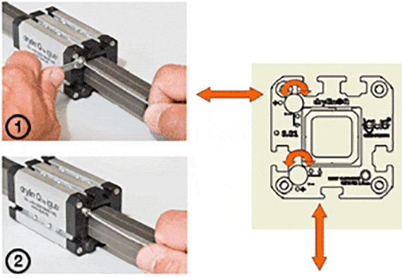 drylin® Q square linear guides always require a minimum clearance between carriage and rail. They are supplied with pre-adjusted clearance ready for installation. The bearing clearance of the carriages can also be adjusted later if necessary. This should be done without additional load.