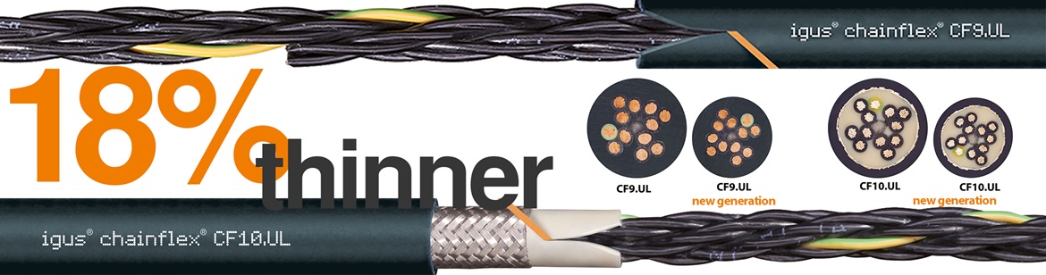 Unshielded control cables CF9.UL and shielded control cables CF10.UL now save considerable installation space