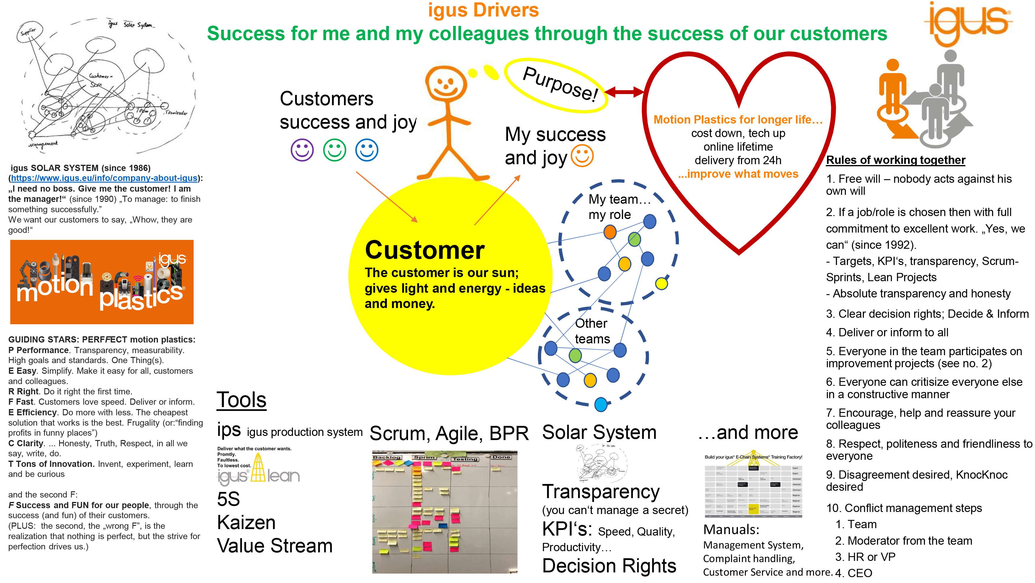 At igus, the customer is at the centre of all activities. For us, the customer is as important as the sun is for life on earth: it is a source of light, heat and energy. The customer gives us ideas and work, and enables us to grow and make progress. The "igus solar system" is firmly rooted in our corporate philosophy. Employees and teams orbit our customers like planets, make a note of their wishes and find solutions for their problems. If the customer is satisfied, so are we.